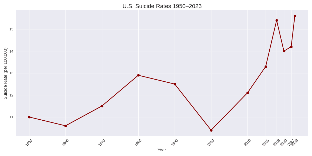 Many people in our society, perhaps most, are lacking those things. There is a crisis of meaning, people are increasingly isolated, and people are increasingly lacking in moral character, nor are they attempting to build character. Maybe that is why suicide rates have risen since the 1960’s, even though in material terms, our lives have gotten much better. As Nietzsche says, one who has a why can bear almost any how. Today, many no longer have a why.